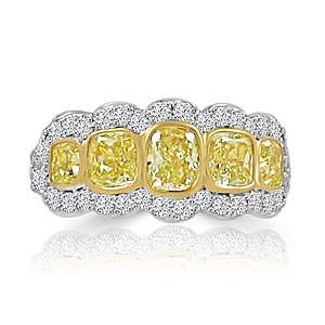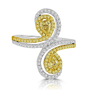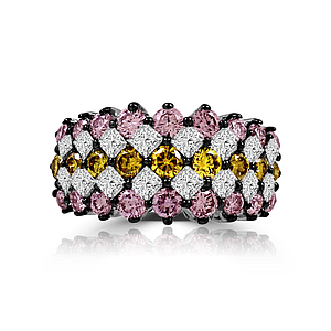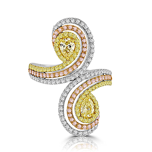 Natural Yellow and Pink Diamond with Princess Cut Diamond Ring