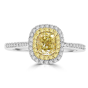 Oval Yellow Diamond with Pink Diamond Halo Ring