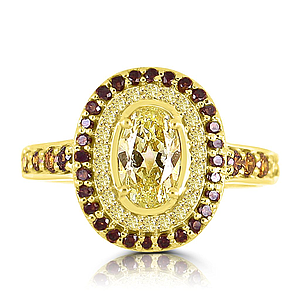 Oval Yellow Diamond with Orange Diamond Halo Fancy Ring