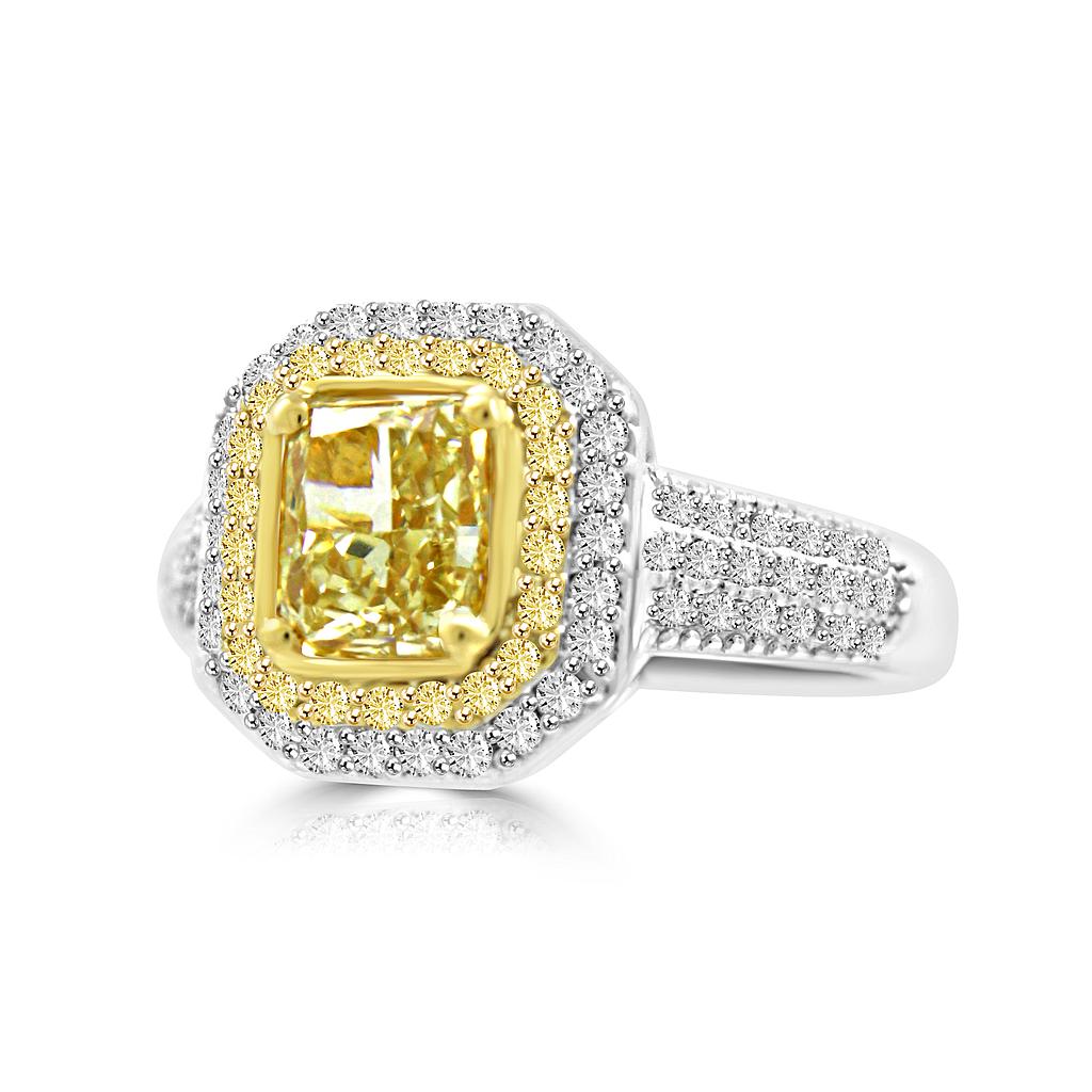 Yellow Diamond Ring accented with Natural Yellow and White Diamond melees set in 18k Gold