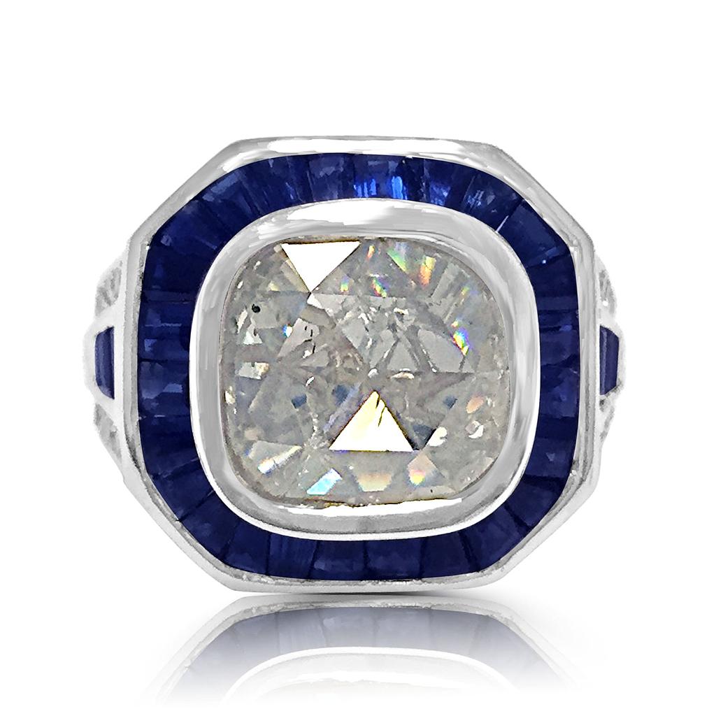 3 Ct Rose Cut Diamond Ring with Sapphire