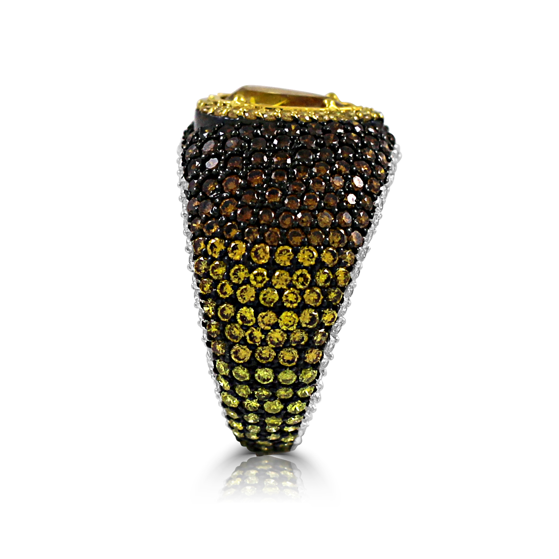 Sun Drop Yellow Diamond Ring with a band of color graduated Natural Color Diamonds. This uniquely styled ring is perfect for any cocktail party.