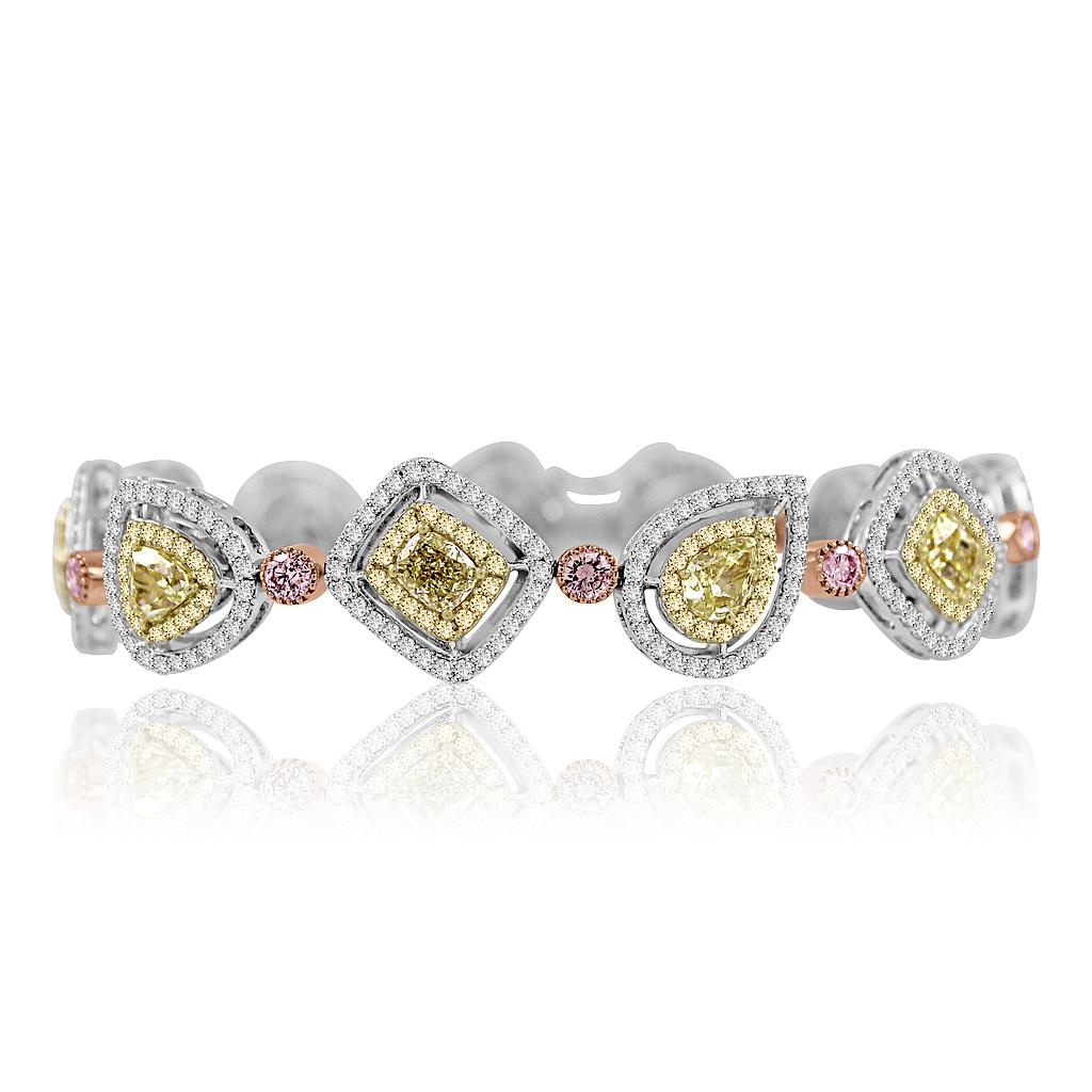Mix Shape Yellow and Pink Diamond Line Bracelet set in 18k gold