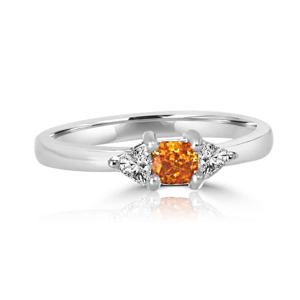 Natural Orangy Diamond Ring with Trillion Cut White Diamonds set in 18k gold