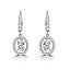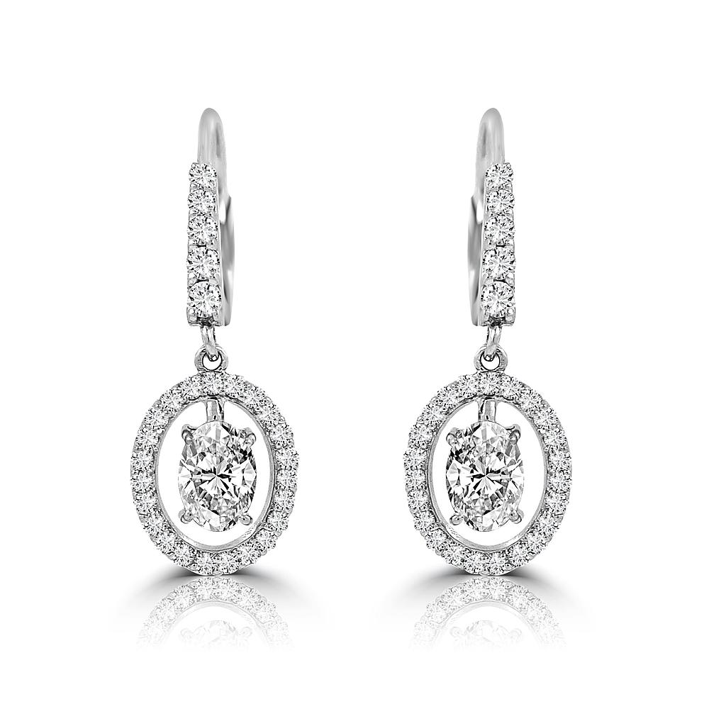 Oval White Diamond Dangle Earrings with a halo of White Diamond melees set in 18k gold