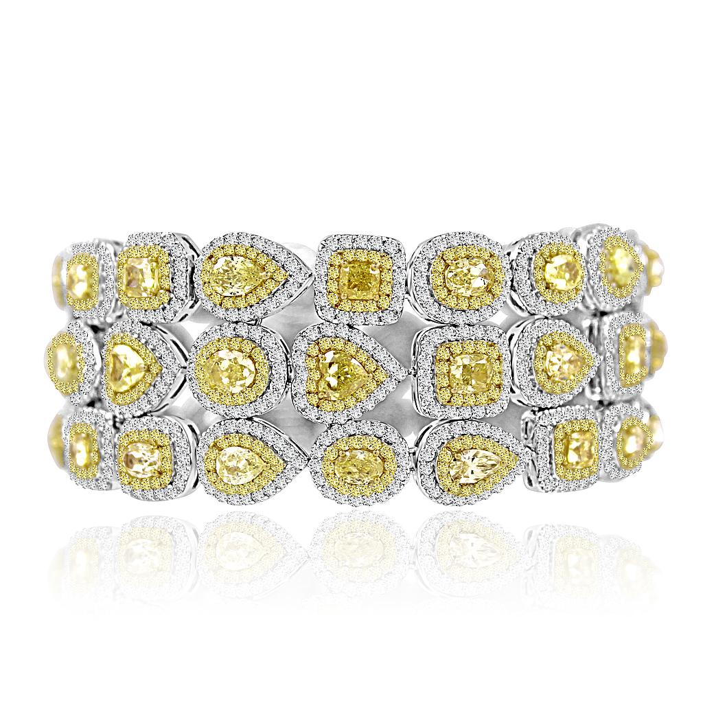Three Row Fancy Shape Yellow Diamond Bracelet