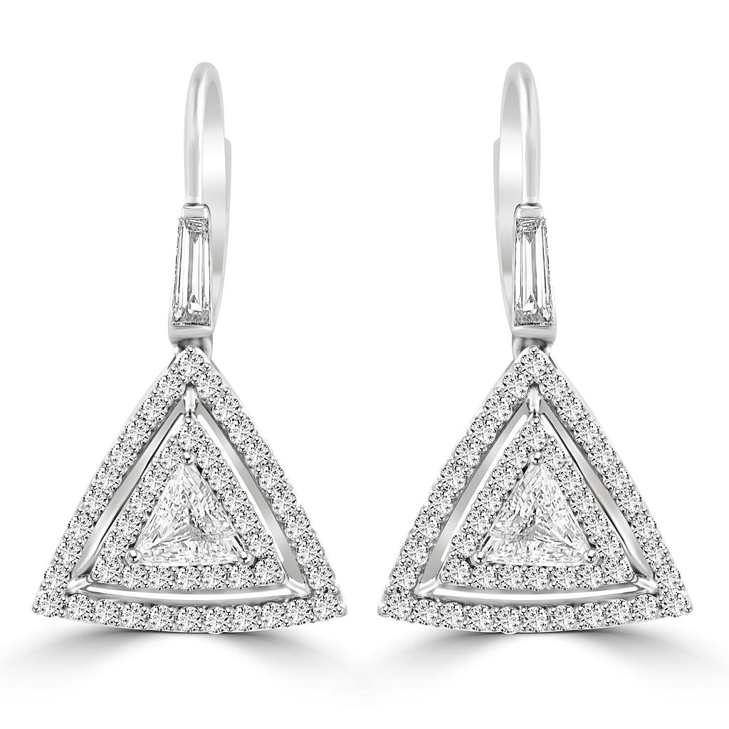Dangling earrings featuring triangle shaped white diamonds set in 18 karat white gold.