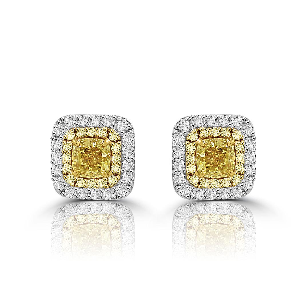 Yellow Diamond Double Halo Earrings