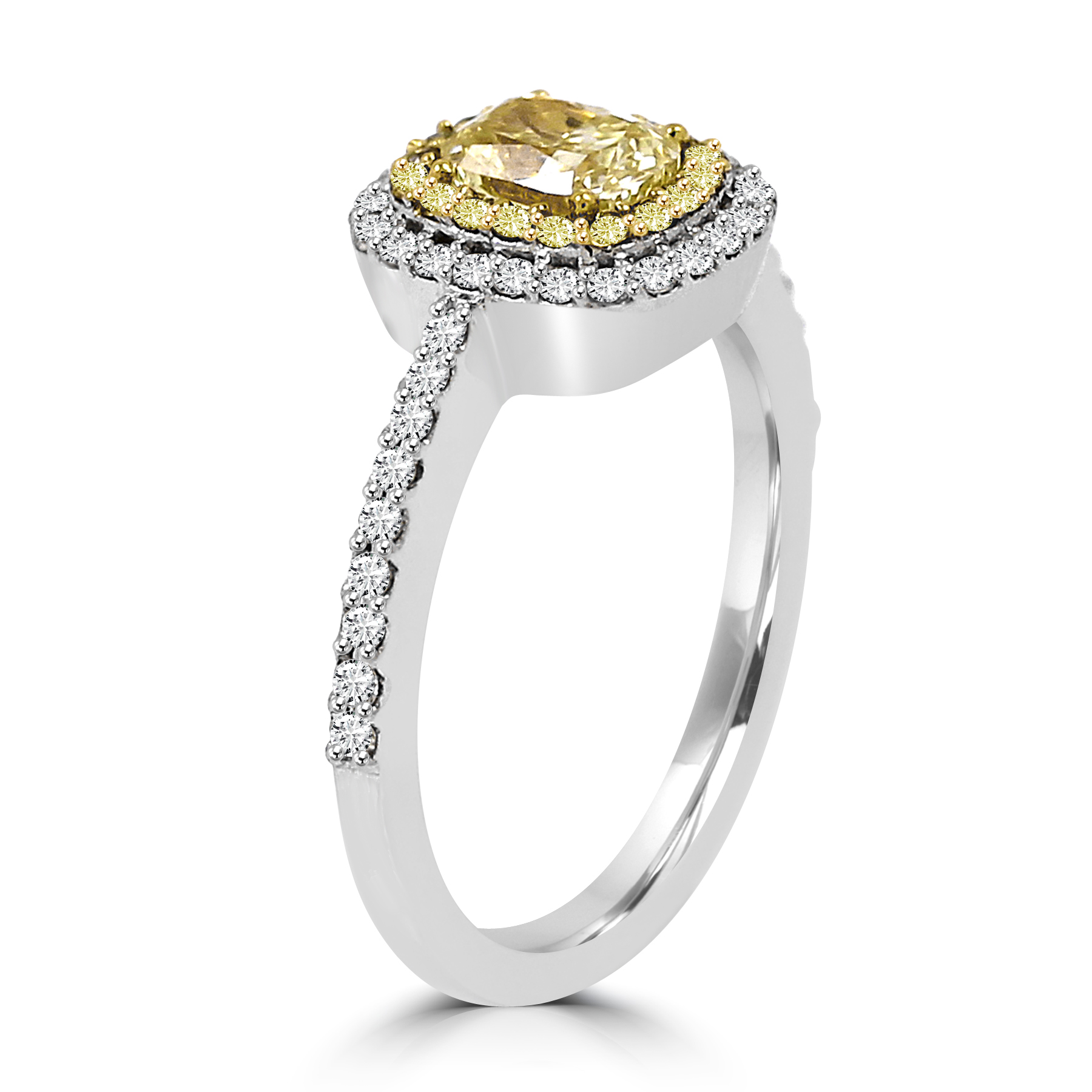 Cushion Cut Yellow Diamond Halo Ring