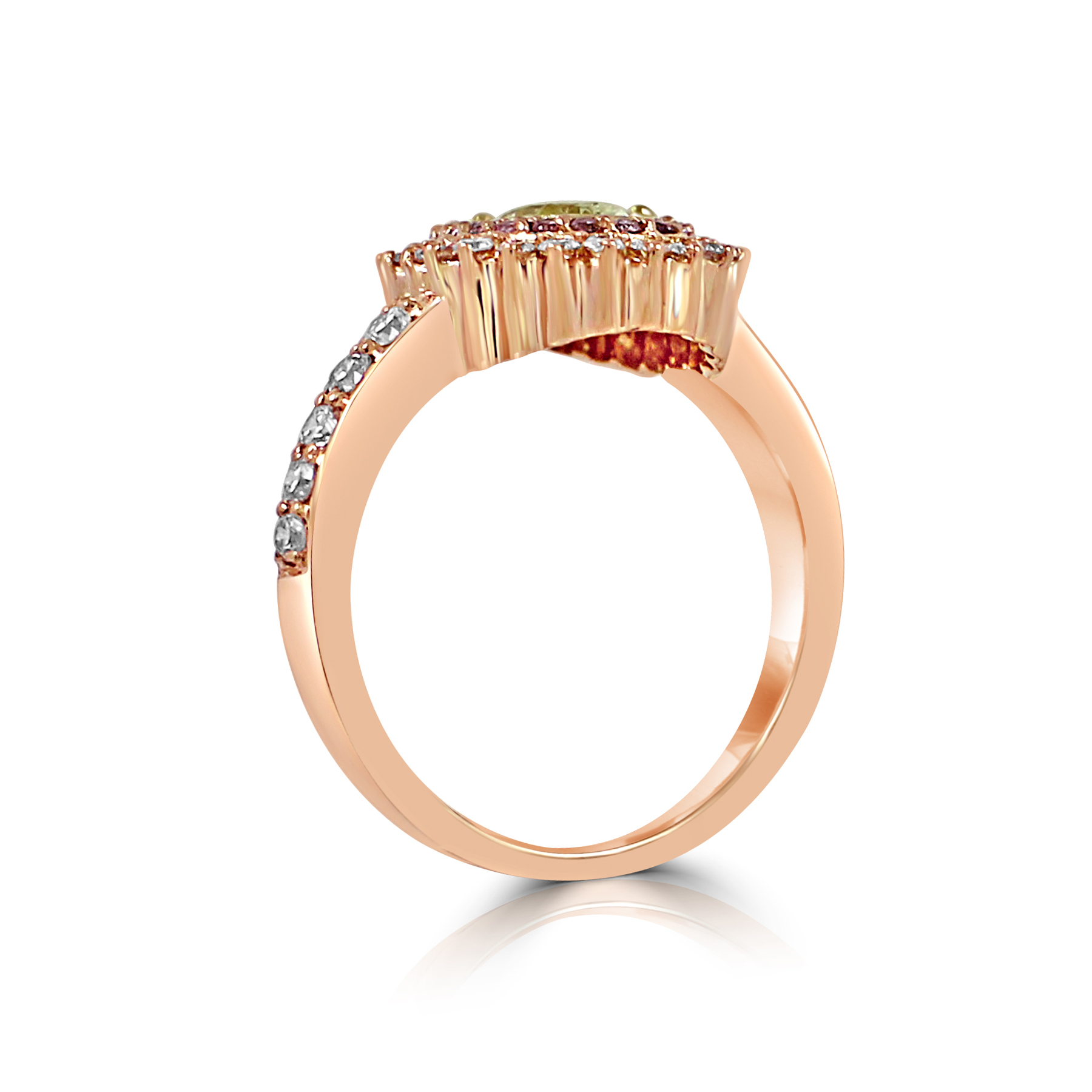 Oval Yellow Diamond with Pink Diamond Halo Ring in Pink Gold